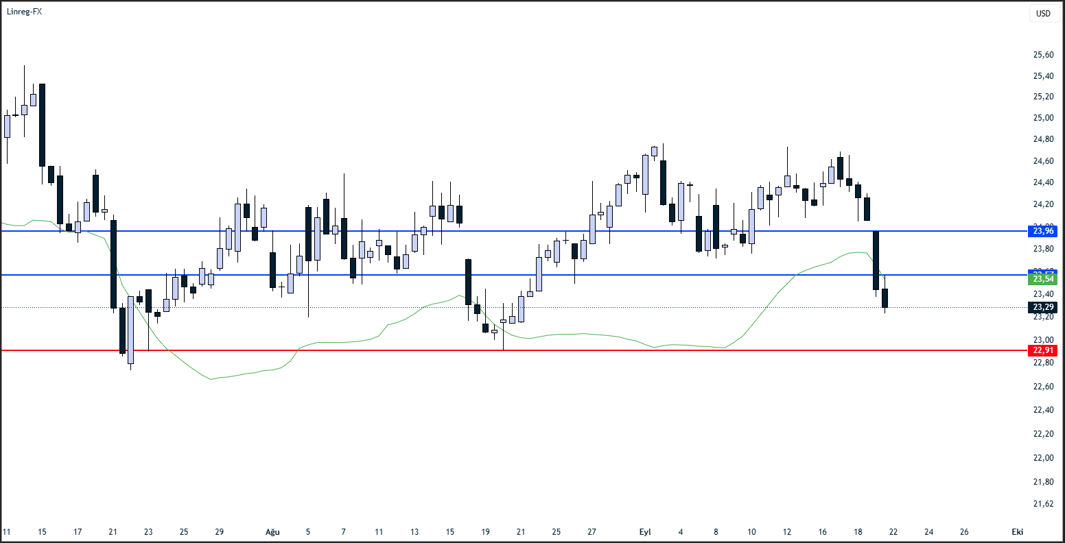 Teknik değerlendirme: CTRA dört saatlik grafikte ortalama fiyattan sapma sınırlarının altında işlem görüyor. Kırmızı çizgi ile belirtilen 22,91 seviyesinin korunması durumunda yükseliş yönlü fiyat hareketlerinin oluşma ihtimalinde artış olabilir. Potansiyel hedefler arasında 23,57 ve 23,96 seviyeleri bulunuyor.Kritik Seviye: 22,91