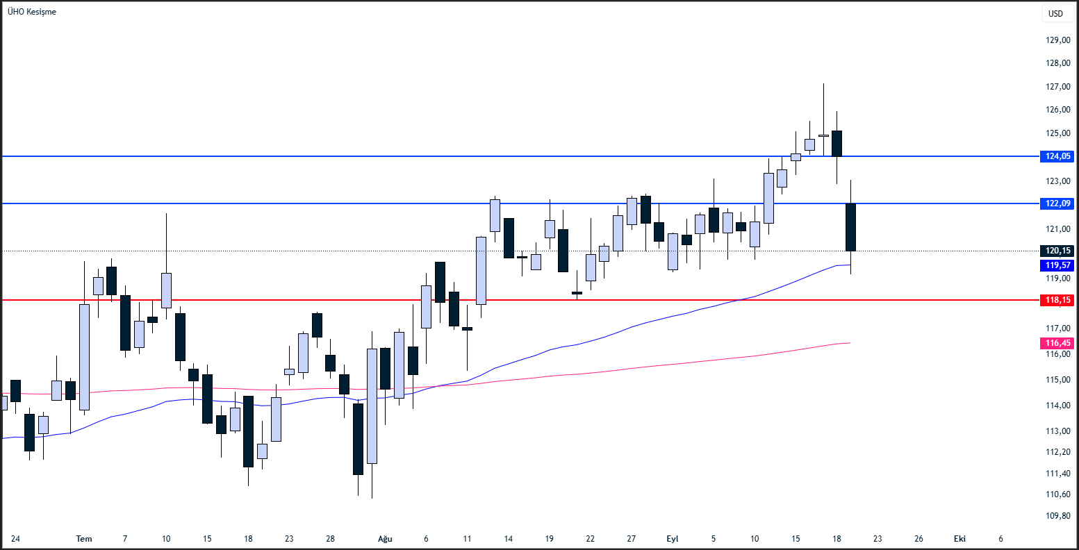 Teknik değerlendirme: EXPD, 50 günlük üssel hareketli ortalama seviyesinin hemen üzerinde fiyatlanıyor. Kırmızı çizgi ile belirtilen 118,15 seviyesinin korunması durumunda yükseliş yönlü fiyat hareketlerinin oluşma ihtimalinde artış olabilir. Potansiyel hedefler arasında 122,09 ve 124,05 seviyeleri bulunuyor.