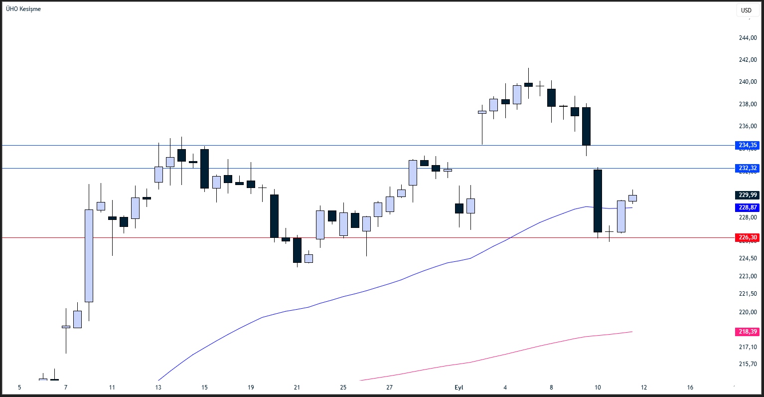 Potansiyel Hedef: 232,32 / 234,35