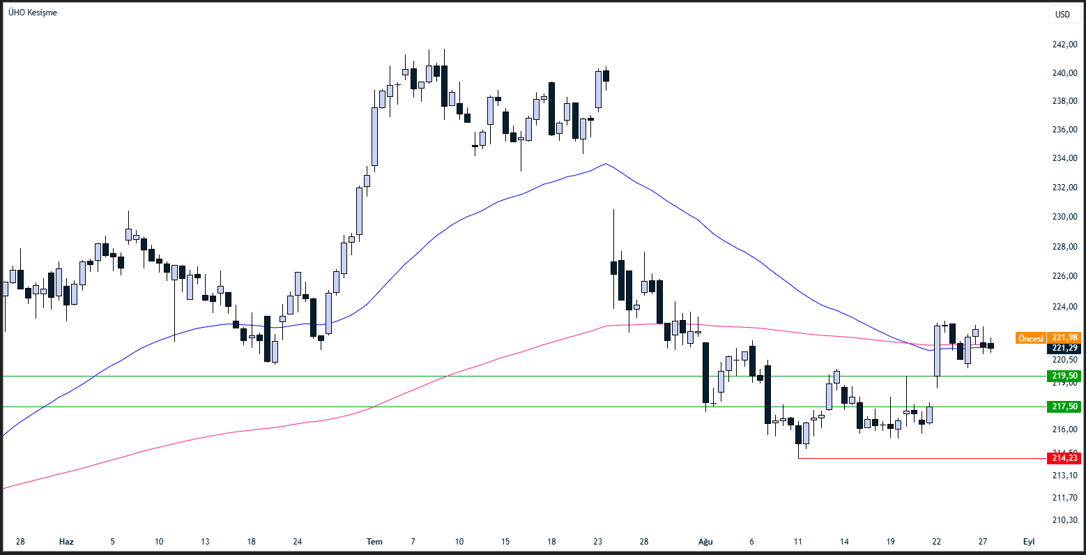 Teknik değerlendirme: HON fiyatı, 4 saatlik grafikte 50 ve 200 barlık üssel hareketli ortalama fiyatlarına yakın seyrediyor. Cuma günü volatilitenin artmasıyla oluşana açılış boşluğunun başlangıç ve bitiş noktaları destek görevi görebilirler. Bu bağlamda 219,5 ve 217,5 dolar seviyeleri önemli olabilir. Bu seviyelerden itibaren yükseliş yönlü fiyat hareketlerinin oluşma ihtimalinde artış olabilir. 214,23 dolar ise kritik bir seviye olarak karşımıza çıkıyor.