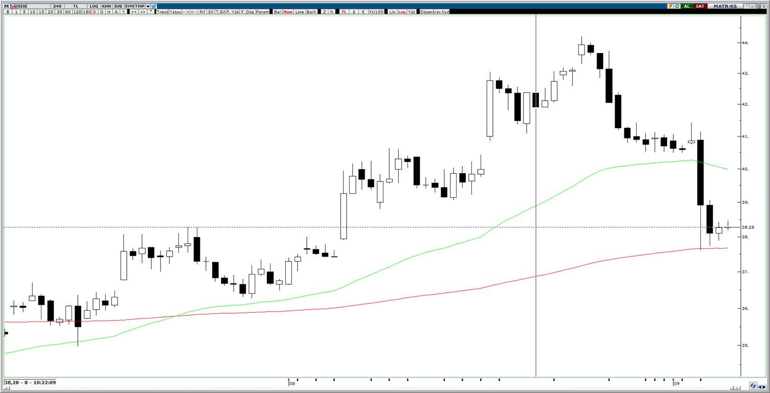 Teknik değerlendirme: SISE, 4 saatlik grafikte 200 barlık üssel hareketli ortalama seviyesinin hemen üzerinde fiyatlanıyor. Fiyatın geldiği konum itibariyle 37,62 seviyesini ihlal etmediği sürece yükseliş yönlü fiyat hareketlerinin meydana gelme ihtimalinde artış olabilir. Fiyatın karşılaşacağı ilk dirençler ise 38,7 ve 39,06 olabilir.