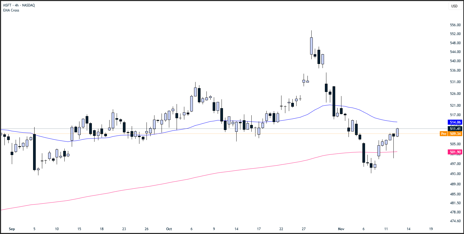 Teknik değerlendirme: Bilanço açıklamasının ardından satıcılı bir süreç geçiren MSFT, 4 saatlik grafikte 200 barlık üssel hareketli ortalama seviyesine kadar geriledi. 500 seviyesi altında fiyatlamalar olmaması durumunda yükseliş yönlü fiyat hareketlerinin oluşma ihtimalinde artış olabilir. Potansiyel hedefler arasında 517 ve 530 seviyeleri yer alıyor.
