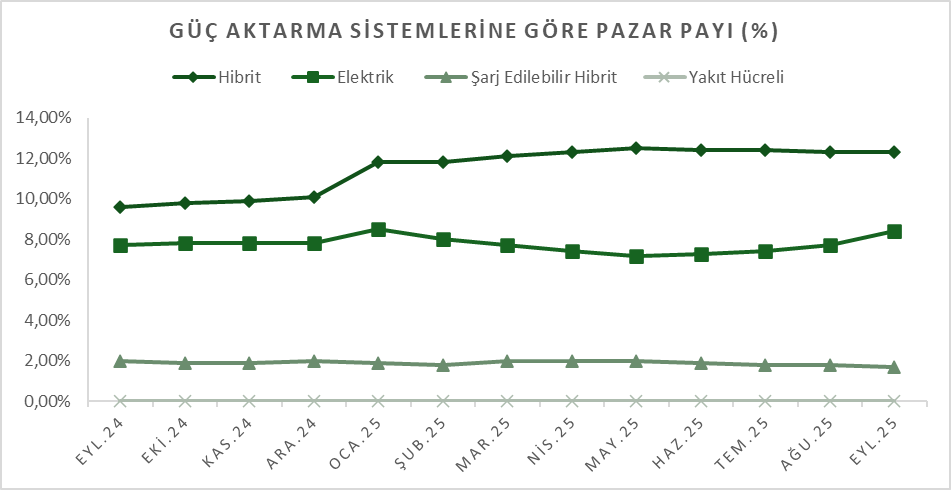 Şarj edilebilir hibrit araçlar (PHEV) ise, vergi kredilerinden yararlanabilmelerine rağmen BEV’ler kadar güçlü bir performans sergileyemedi. Eylül ayında PHEV satışlarının toplam satışlar içindeki payı %1,7 seviyesinde gerçekleşti.