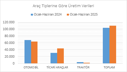 Araç tiplerine göre üretim karşılaştırması (2024 &2025 Ocak-Haziran)