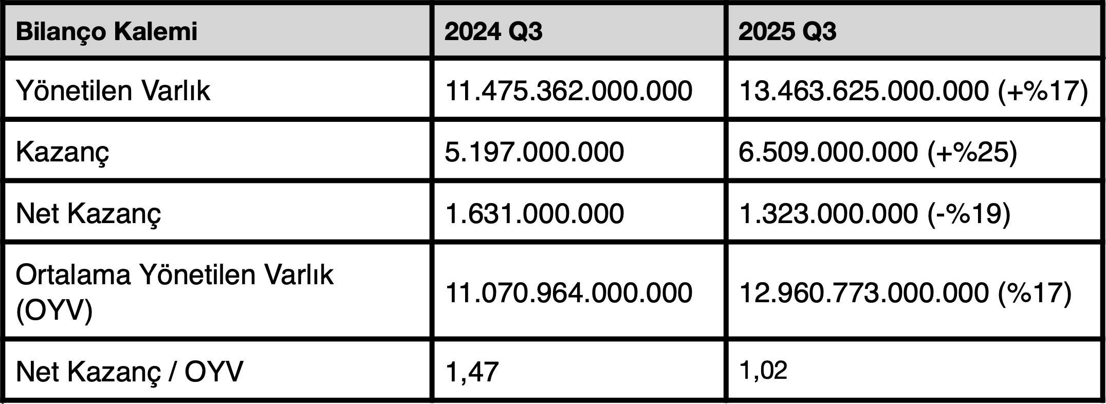 BlackRock'ın düzeltilmiş hisse başına kazancı, bir önceki yıla göre %1 artışla 11,55 dolar olarak gerçekleşti ve piyasanın ortalama 11,47 dolarlık tahminini geçti. Gelir ise bir önceki yıla göre %25 artarak 6,5 milyar dolara ulaştı. BlackRock, müşterilerinin günlük veya kısa vadeli nakitlerini değerlendirmek için kullandığı "nakit yönetimi ve para piyasası fonlarına" bu çeyrekte net olarak 34 milyar dolar yeni yatırım çekti. Bu düşük riskli, likit fonlarda yönettiği toplam varlık miktarı ilk kez 1 trilyon dolara ulaştı. Şirketin, alternatif varlık alanında lider olma planının bir parçası olarak, üçüncü çeyreğin başında HPS Investment Partners'ı 12 milyar dolara satın alması da bu çeyrekteki önemli gelişmelerden biriydi.