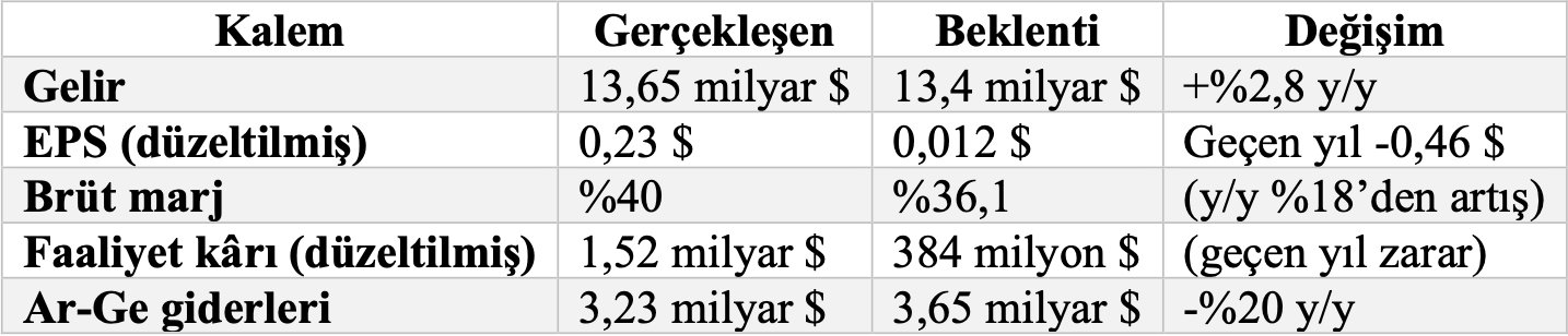 • Tüm ürün gelirleri: 12,65 milyar $ → Beklenti 12,12 milyar $